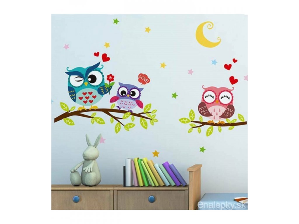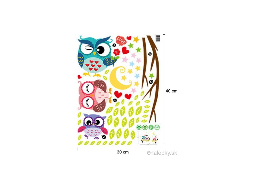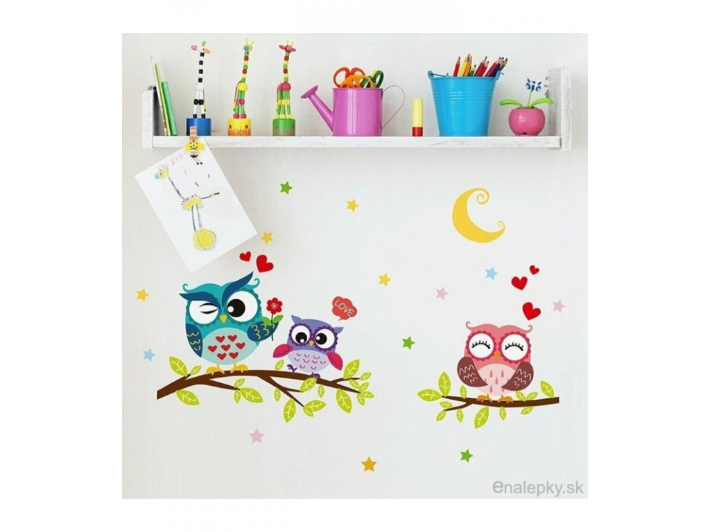 VÝPREDAJ SKLADU - Nálepky na stenu - Farebné sovičky